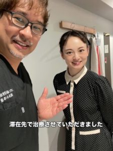 前日には滞在先で出張治療。しっかりと体を整えさせていただきました。